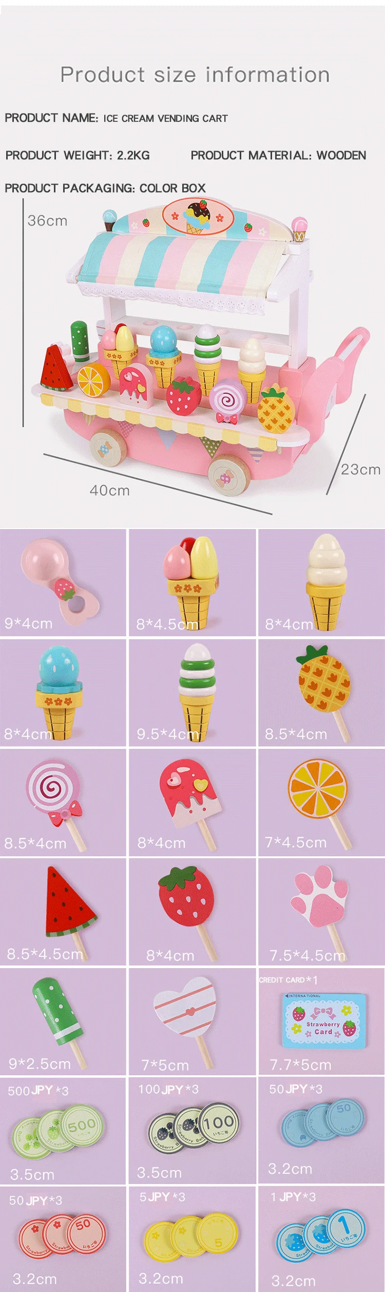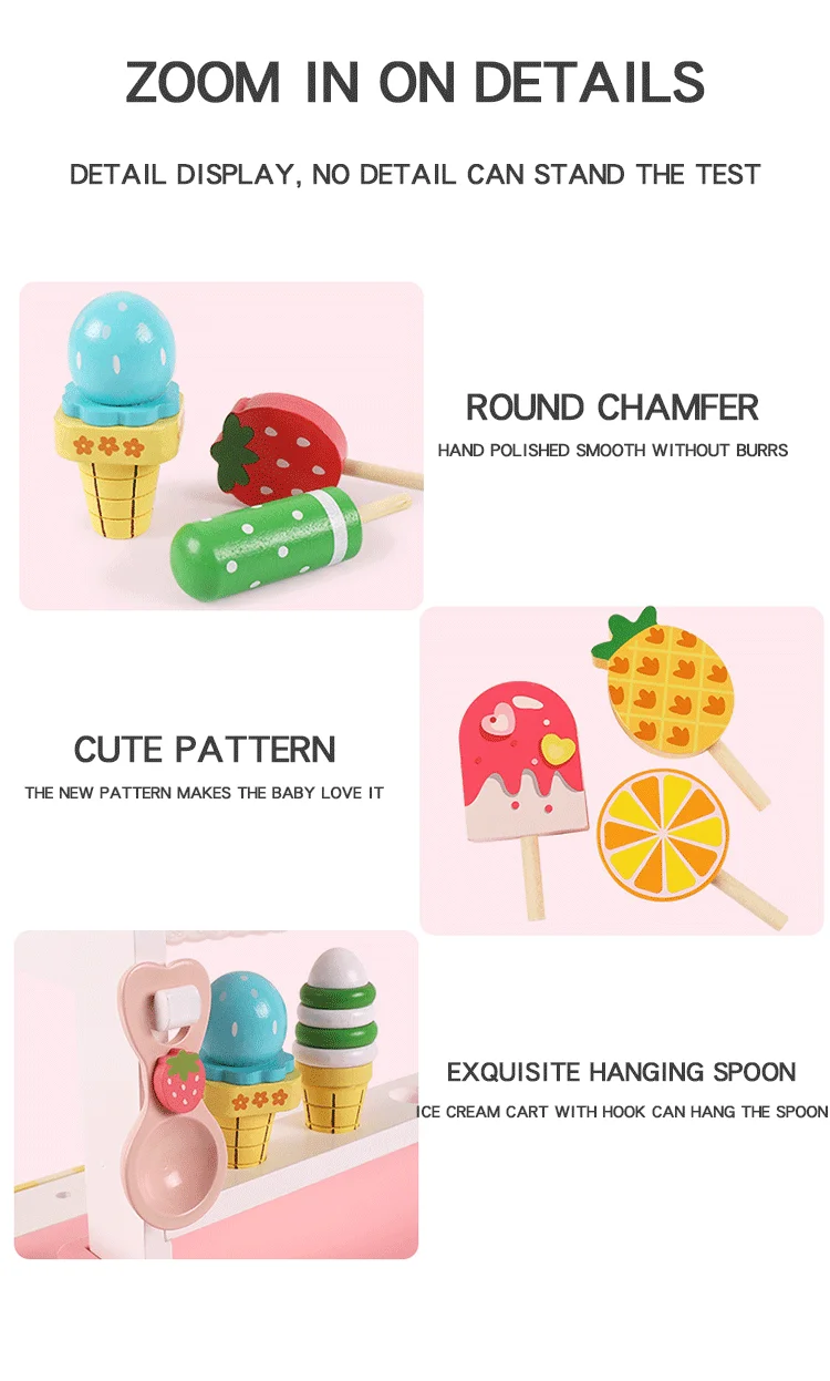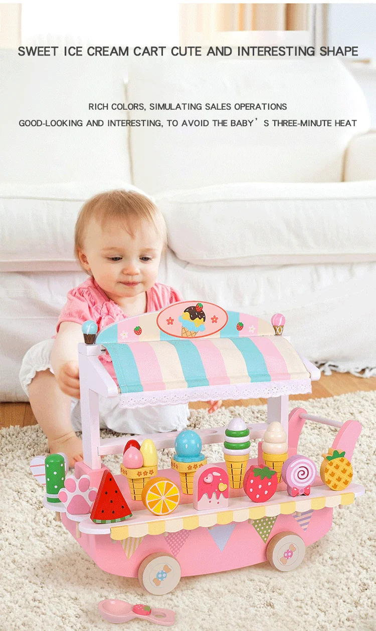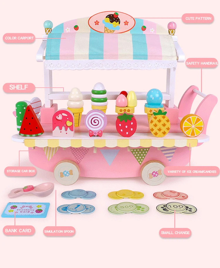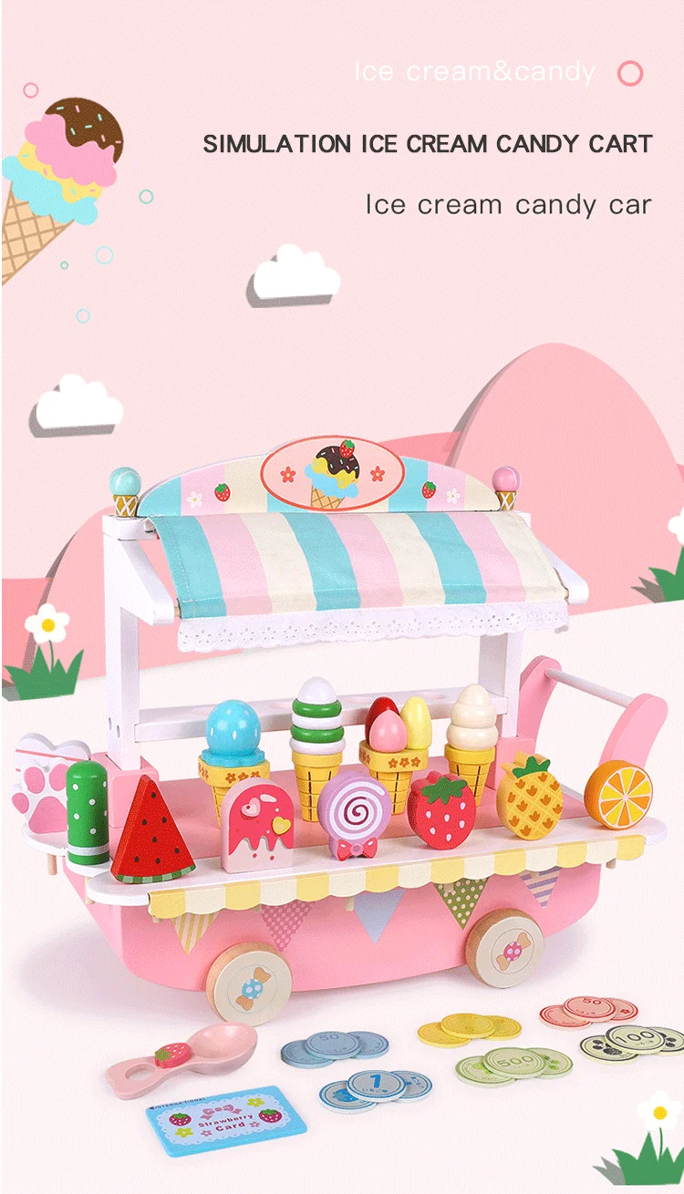 Kids Montessori Educational Pretend Play Ice Cream Candy Cart Kitchen Gift Wooden Creative Birthday Baby Toys Unisex