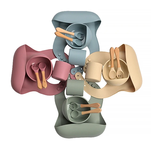 Dinnerware Type: baby silicone bib, cup, plate, bowl, spoon, and fork