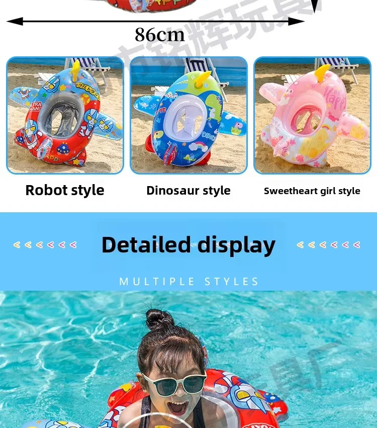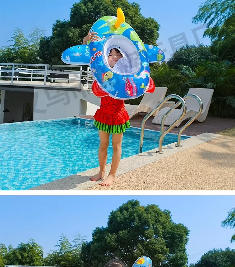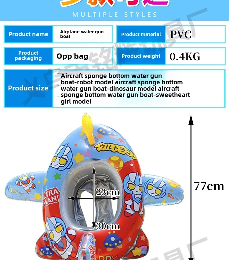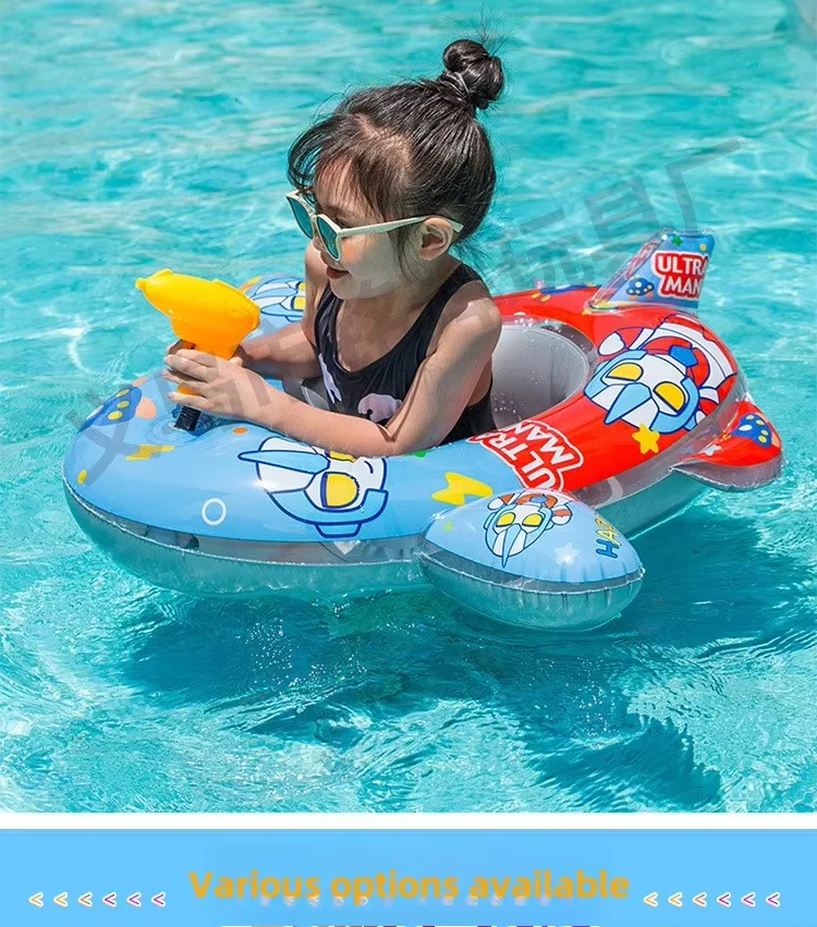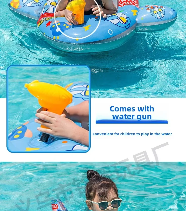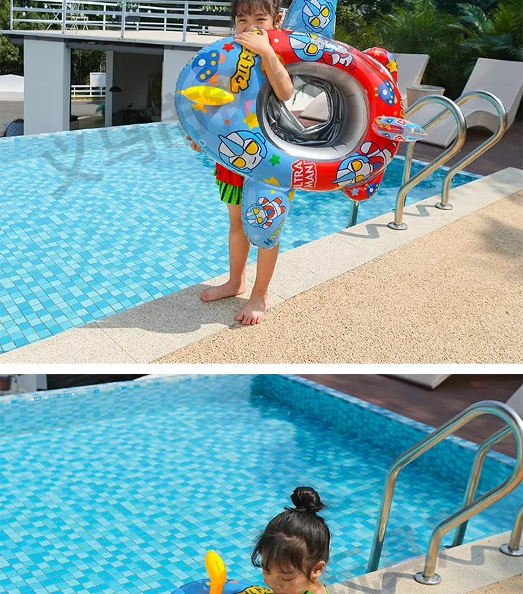 Cute Cartoon Kids PVC Inflatable Swimming Ring Water Gun Aircraft Seat Eco-Friendly Pool Float for Play in Water Sports
